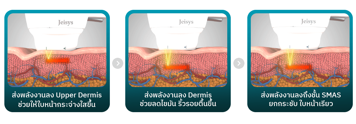 เทคโนโลยีที่ก้าวไปอีกขั้นที่เหนือกว่า HIFU ทั่วไป ด้วยการใช้คลื่น Ultrasound ความถี่สูงทำให้เกิดความร้อนเป็นจุดเล็กๆเรียงต่อกันเป็นแถวเส้นตรง (Linear) ส่งผลให้ในแต่ละชั้นผิวเกิดการหดตัว และช่วยกระตุ้นกระบวนการสร้างคอลลาเจน ทำให้ใบหน้ายกกระชับ ปรับรูปหน้า ยกคิ้ว ยกหางตา ลดไขมัน พร้อมปรับผิวกระจ่างใจได้อย่างมีประสิทธิภาพ